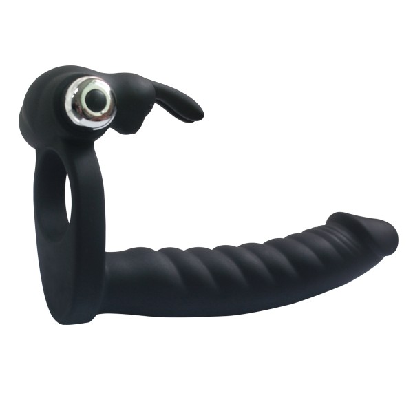Насадка с кольцом, при помощи которого фиксируется на половом члене мужчины! Клиторальный стимулятор с милым зайкой обещает самую волнительную стимуляцию клитора, в то время как женщина ощутит полную заполненность вагины и ануса, одновременно!